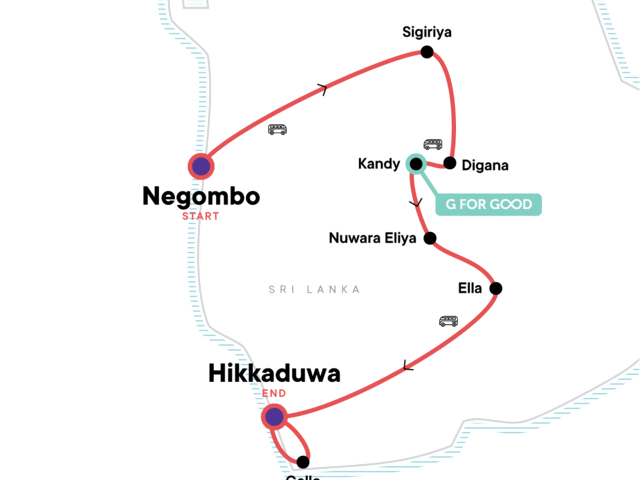 Enjoy a traditional breakfast prepared by women and youth living with disabilities at G Adventures-supported Sthree Craft Shop and Café. Travel on to the rolling hills and luscious forests of Nuwara Eliya. Visit a tea plantation and opt to explore the beauty on foot.