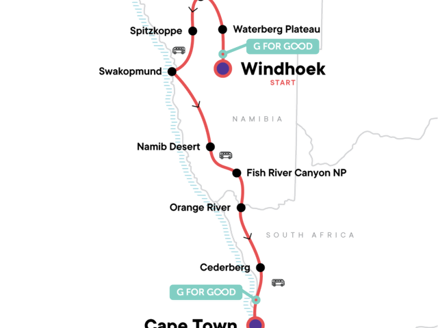 It’s time to cross another country off those travel lists as the group heads into South Africa! You will be camping at the scenic Orange River for the night where you can kick back, relax, reflect on how epic this trip has been, and enjoy a late afternoon swim in the river. If you are still in need of some activity choose to book a canoe excursion on the river. Other than that your job today is to enjoy yourself and have a relaxing time.