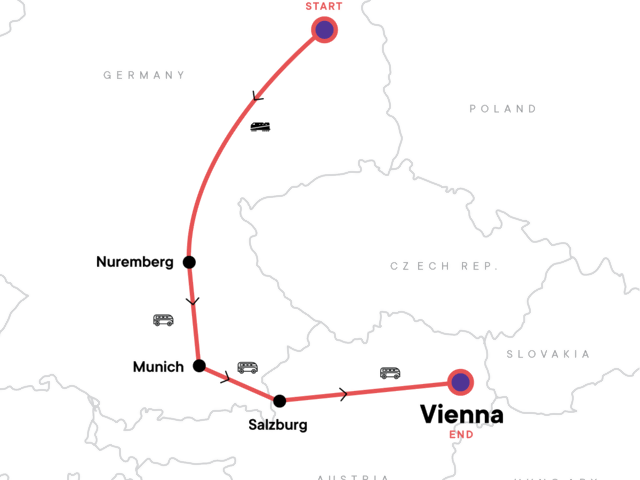 Your Welcome Moment: Welcome Moment - Meet Your CEO and Group, Berlin. Welcome meeting and group dinner. Orientation walk in Berlin. Christmas markets visit Berlin. Train ride to Nuremberg. Christmas market visit Nuremberg. Private transfer to Munich. Free time in Munich. Private transfer to Salzburg. Hellbrunner Christmas Market visit. Salzburg Christmas market visits with CEO. Free time in Salzburg. Private transfer to Vienna with stops at smaller Christmas markets. Free time in Vienna. CEO led orientation walk of Vienna. Coffee/pastry tasting Vienna. Mug of Glühwein (mulled wine). 24hr transit pack in Berlin and Vienna.