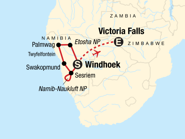 Flight between Windoek and Victoria Falls is included. It is important that we have your passport information at the time of booking in order to process these tickets. Internal flight tickets are issued locally and will be given to you prior to the flight departure.