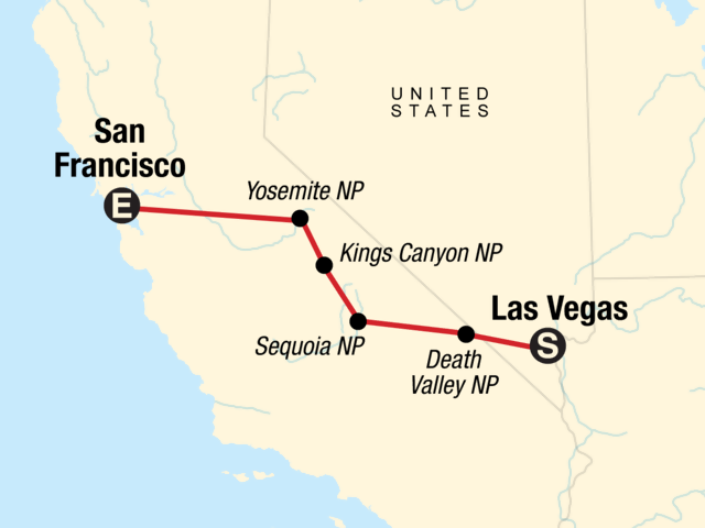 Marvel at the natural splendor of California as you delve deep into its incredible national parks. Gaze up at 100-foot-tall sand dunes and the towering trees of Sequoia National Park. Be surprised by the abundance of life that flourishes amid the depths of Death Valley, spot glacial erratics in Yosemite Valley, and watch for endangered Sierra Nevada bighorn sheep roaming the Great Western Divide. Bookend the adventure amid the lights of Las Vegas and the cultural vibrancy of San Francisco.