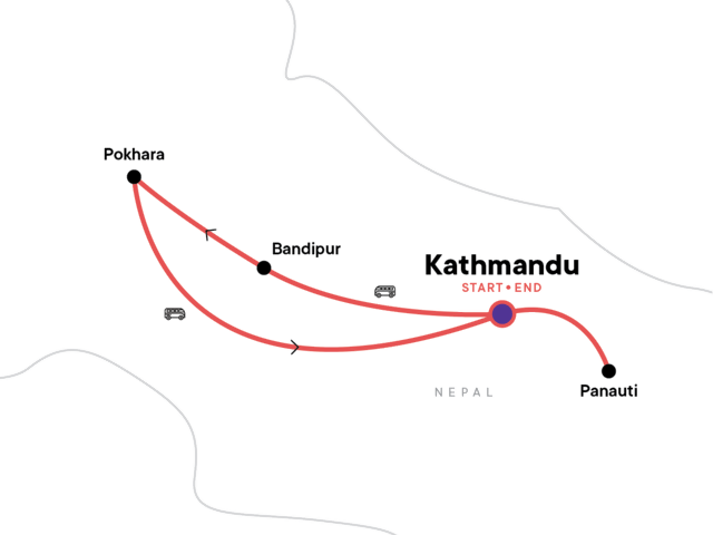 Your Big Night Out Moment: Lakeside Bar, Pokhara. Patan Durbar Square Tour. Swayambhunath Temple Visit. Hike to Panauti Community Homestay. Bike Tour of Panauti Region. Bandipur Orientation Walk. Ramkot Village Hike. Pokhara Orientation Walk. All transport between destinations and to/from included activities.