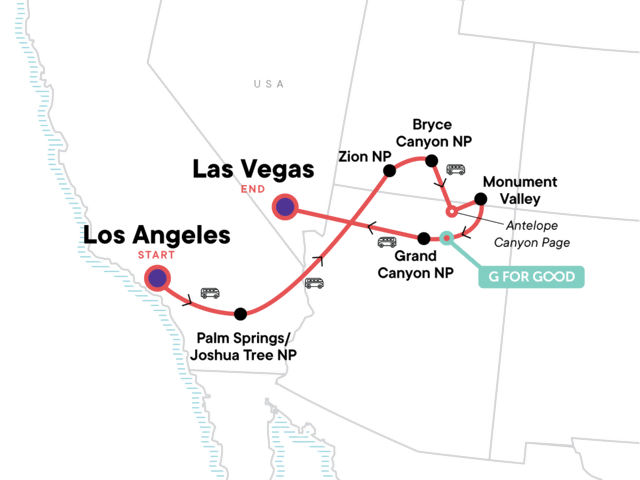 Your Welcome Moment: Welcome Moment - Meet Your CEO and Group. Joshua Tree National Park visit. Zion National Park visit. Bryce Canyon National Park visit. Horseshoe Bend and Antelope Canyon visits. Navajo guided Monument Valley jeep tour. Full day hiking in Grand Canyon National Park. Drive Route 66, Entrance fees to all national parks and monuments with hiking and walking excursions. All transport between destinations and to/from included activities.