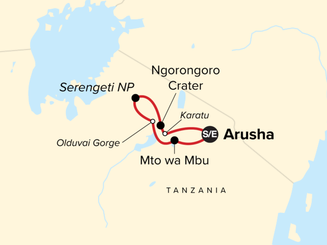 Your Family Journeys Moment: Ngorongoro Rim Walk & Painting, Ngorongoro Crater. Arrival transfer. Wildlife safari drives in Ngorongoro Crater and Serengeti National Park. Entrance to Olduvai Gorge Museum and Visitors Centre. Coffee plantation tour. All transport between destinations and to/from included activities.