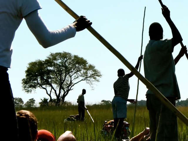 Today is going to be busy, but fun! Wake to the sounds and smells of the bush around you and then dive right into some nature with an overnight excursion into the Okavango Delta. Travel in a traditional mokoro (dugout canoe) and do some birdwatching on the way to our basic bush camp for the evening. Arrive around lunchtime, set up camp, and get used to your surroundings. Then head out for some adventure on a wildlife walk. The cool thing about being on foot is that you will get to learn about tracking the animals and gain insight into their movement patterns and behaviour more than if you were just in a vehicle. As night falls on the group gather around the campfire, sing with the locals, and simply unwind with a sundowner as you count the stars (cheers!)
